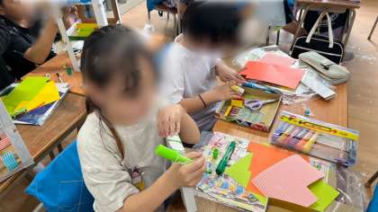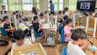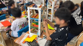 図工の学習です。紙工作「コロコロガーレ」も完成に近づいてきていました。細かいところにも気を配って作っていました。