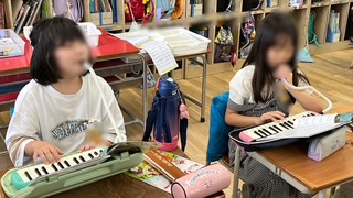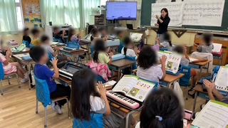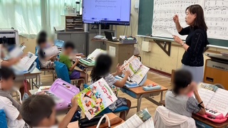 音楽の学習です。手遊び歌をみんなで楽しんだ後、鍵盤ハーモニカの練習をしていました。
