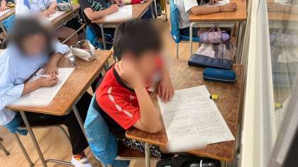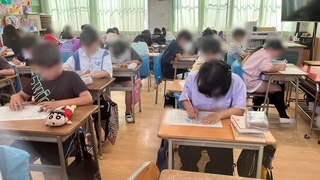 国語のテストに取り組んでいました。静かな教室でカリカリと鉛筆を動かす音だけか聞こえていました。