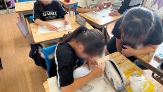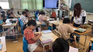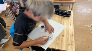 算数で図形分野の角度の学習です。練習プリントをしていました。分度器や定規などを使って問題で出された角度を描いていました。できた人は友だちにアドバイスする小先生になっていました。