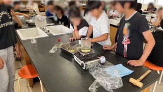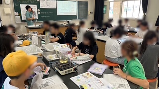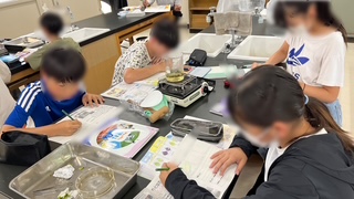 理科の学習です。葉がでんぷんをつくっているかどうかを調べる実験をしていました。結果と考察をワークシートに書き込んでいました。