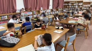 図書の時間でした。この時間に何を読もうか吟味して選んでいました。決まったら席で静かに読書していました。