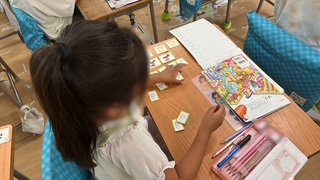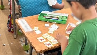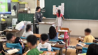 算数の学習です。数を整理する単元で、動物のカードを使って動物別に分けてその数を調べていました。分け方、並べ方についてたくさん意見が出ていました。