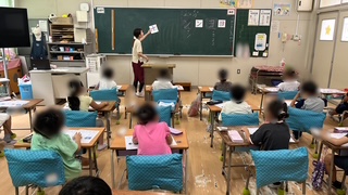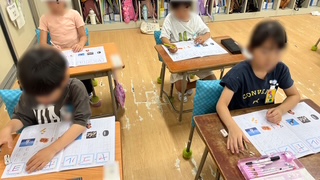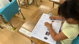 国語の学習です。カタカナの「ン」と「ボ」を練習しました。ボは前に習ったホに濁点をつけたらいいことを見つけていました。一字一字丁寧に練習していました。