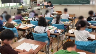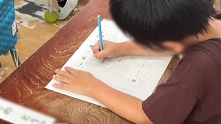 国語の学習です。カタカナの練習プリントに取り組んでいました。教科書の巻末に載っているカタカナ表を参考にしながら丁寧に書こうと頑張っていました。