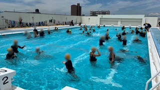 プール水泳学習の様子です。5年生は、今日が今年度最後のプール水泳学習の時間だったので、自由練習時間を多めにとっていました。みんな気持ちよさそうに楽しんでいました。