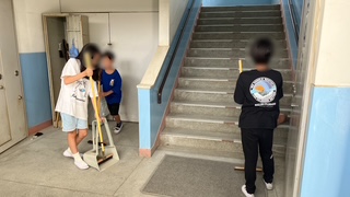 今日も児童全員で清掃活動を行っています、暑い中ですが、自分たちの学校を綺麗にしようと頑張っていました。