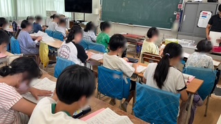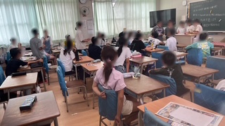 上段は1組、学級会を開いていました。中段は2組、テスト返しと答え合わせをしていました。下段は3組、漢字チャレンジテストに取り組んでいました。