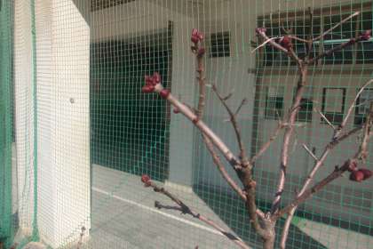 校庭の植物は着実に春の準備をしているようです。梅が花をつけ、春の花壇の桜のつぼみも大きくなってきています。春が待ち遠しいです・・・。
