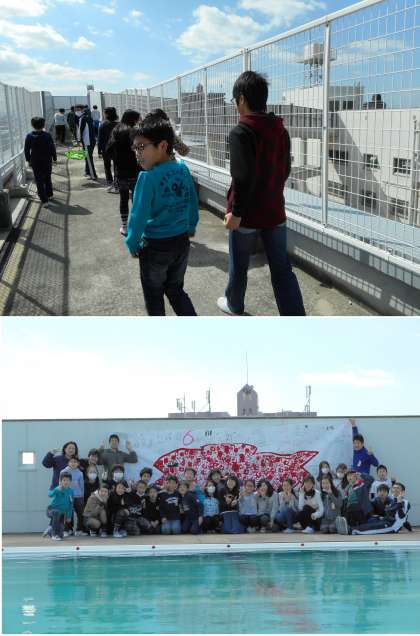 ということで、今日も6年生が夢をかなえてもらっていました。渡った後は、卒業前にみんなで作成した大きな「スイミー」の絵と一緒にプールで記念撮影をしました。良い思い出がたくさんできて羨ましいです。