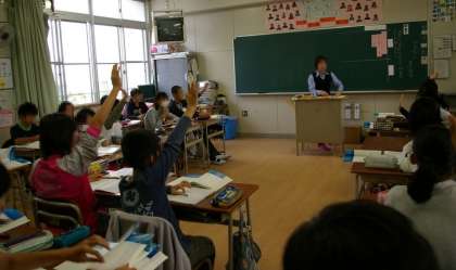6年国語「やまなし」という宮沢賢治の物語文の学習でした。2つの場面を比べることで、主題に迫るという内容でした。まず、2つの場面の違いを会話文や場面の様子・色などから考えていきました。子どもたちは、じっくりと考え手をあげて発表していました。次に、それぞれの場面の印象を考えました。友だちと相談しながら考えて発表していきました。最後にそれぞれの場面の題を考えました。とても難しい文章をしっかりと読み取ることができた学習でした。