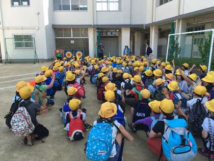 今日は、3・4年生が遠足で錦織公園に行きます。先ほど、元気に出発しました。たくさん楽しんできてほしいと思います!しかし、今日は暑いので熱中症には要注意です。