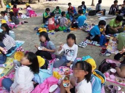 その後は、おいしいお弁当を友だちといっしょに食べ、最後には、汗を流しながら遊具でいっぱい遊ぶことができました。