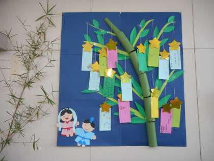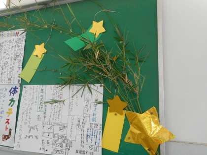 何年かぶりの晴天の七夕です。きぼう教室と前の掲示板には笹の葉に短冊が飾られています!願い事が叶いますように・・・。