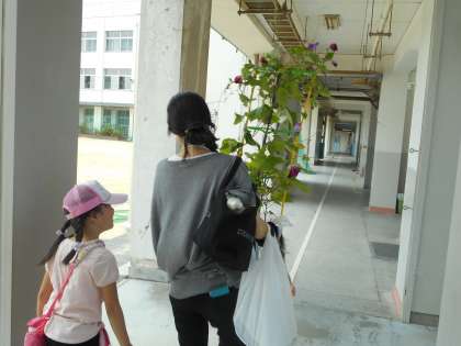 1年生では、個人懇談会に来ていただいた保護者の方に、生活科で育てたアサガオを持って帰ってもらっています。夏休みの間も水やりを忘れず、たくさんの花を咲かせてくださいね。