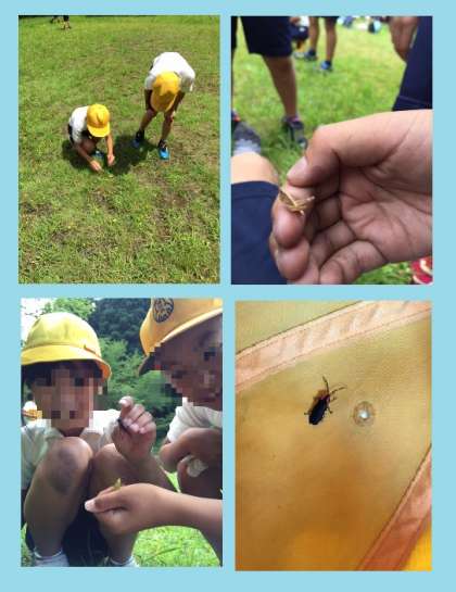 カレーを食べた後は、昆虫採集をしました。大阪市という都会で育っている子どもたちにとっては抵抗があるかと思いきや・・・、平気で虫を触る子が多くてビックリ!さすが子どもです。
