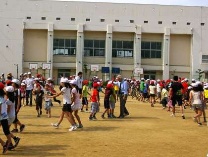 水曜日の朝は、フレンド集会という名前で児童集会を毎週行っています。今日のフレンド集会は、集会委員会が考えた『先生の名前おにごっこ!』でした。先生につかまったら、その先生の名前を10秒以内に答えないと、その場で先生が決めたポーズをし続けないといけないというゲームです。校長先生もたくさんの子どもにタッチして、名前を答えられていました。タッチされた全員、校長先生の名前を言えました。先生たちと子どもたちがふれあえたよい集会活動でした。