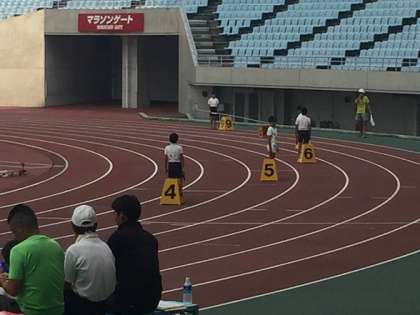 6年生の4×100mリレーの決勝は、がんばりもおよばず、1分01秒08という記録で、残念ながら8位となりました。しかし、決勝での8位はとてもすばらしい成績です。胸を張って帰ってきてくださいね! よくがんばりました!