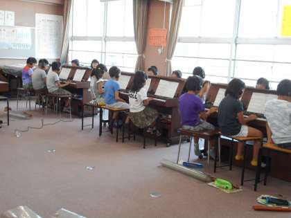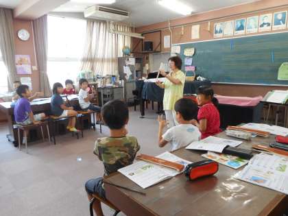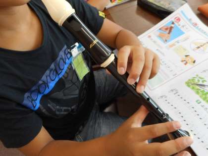今日の2時間目、3年生が音楽の学習をしていました。今年から始まったリコーダーの学習をしていました。今日は高い「レ」の押さえ方を習っていました。「レ」は比較的簡単なのですぐにきれいな音を出せていましたが、今まで習った「ソ・ラ・シ・ド・レ」の音を使った曲を演奏しようとするとなかなか指使いが難しくて悪戦苦闘していました。また、歌唱やオルガンの学習もあり盛りだくさんの内容でしたが、子どもたちはとても楽しそうに活動していました。これからどんどん難しいことも増えてきますが、「音」を「楽」しむことは忘れないでほしいなぁと思います。