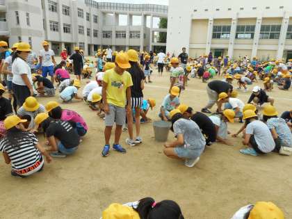 今日の児童朝会の後、運動会に向けて全校児童で石拾いをしました。学年対抗でどれだけ拾えるかの勝負をしました。今日の優勝は、5年生でした!!
