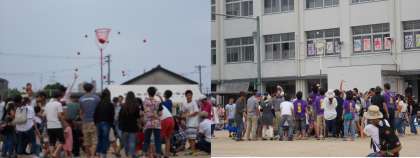 PTA競技「玉入れ」の様子です。たくさんご参加いただきありがとうございました。このようにすぐに集まっていただけるところが清水丘の良いところだと思います。