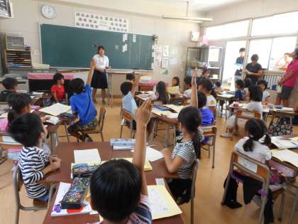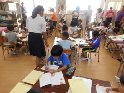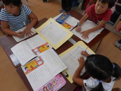 今日の5時間目に1年の研究授業がありました。国語で「サラダで げんき」の学習でした。話の内容をしっかり理解したうえで、自分たち独自の「サラダで げんき」のお話作りをしました。意欲的にしっかりと考えていた1年生にとても感心しました。後日、作ったお話で劇をする予定にしています。楽しみです!