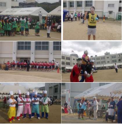 清水丘の大運動会は、毎年小さい子どもからお年寄りの方までみんなが活躍し、みんなが楽しめる運動会で、今年もその通り素晴らしいものとなりました。名物、借り物競争では、サプライズで今年いっぱいしか見られないあの方々が登場し、大盛り上がりでした。また今年度も教職員も参加させていただき、大活躍?していました。今年度から清水丘に赴任した教職員は、清水丘地域の連携・団結の素晴らしさに驚いていました。