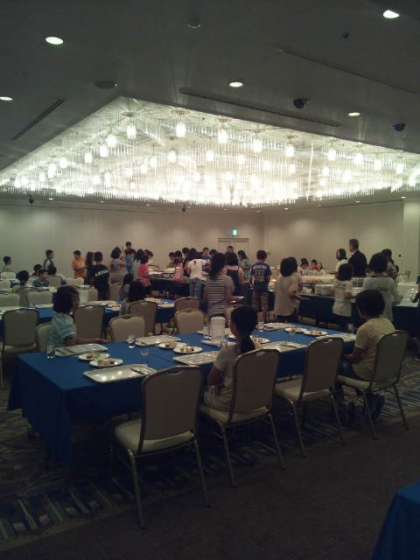 いよいよお待ちかねの夕食です。みんなでいただきますをした後に、料理を取り行きます。多く取りすぎて残さないでね。みんなおいしくいただいています。