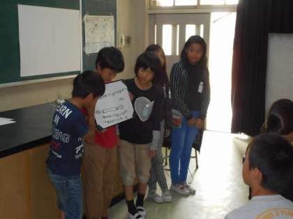 今日は4年生で理科の研究授業がありました。児童は、空気は水と違って押し縮められることを知り、縮められた空気が元に戻ろうとして空気でっぽうの前の玉が飛ぶという仕組みを学びました。4年生の子どもたちは一生懸命考えていて、積極的な姿勢に感心しました。