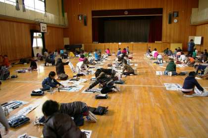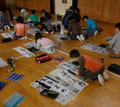 12月16日(月)2時間目、3年生全員が講堂で書き初めの練習をしました。毛筆の学習は、4月から始めていますが、書き初め用の長い半紙に書くのは、今日が初めてです。床の上で書くのも初めての体験です。「生きる力」と書きました。文字の大きさや配列に気をつけて長い半紙におさまりよく書くのは難しかったようです。3年生は、冬休みの宿題として、書き初め用に3枚の長い半紙を持って帰ります。今日の練習を生かして、書き初めを楽しんでほしいです。