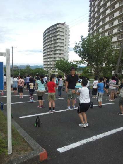 朝の集いです。元気にラジオ体操をしています。みんな元気に目覚めたようです。