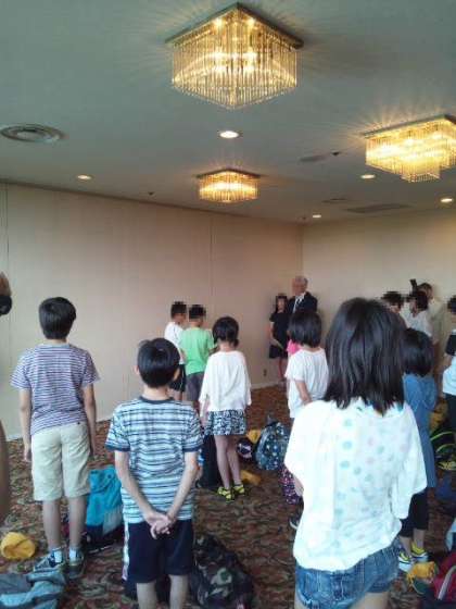 閉舎式で、ホテルの皆さんに感謝の気持ちを伝えています。