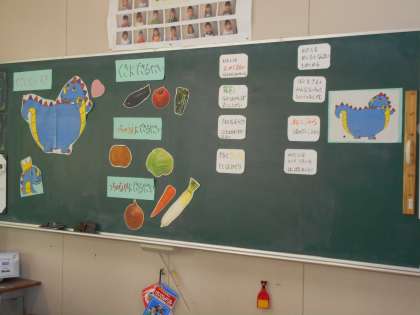 今日は1年生で栄養学習がありました。野菜についての学習でした。茎になる野菜、土の上にできる野菜、土の中にできる野菜があることを知り、野菜は栄養たっぷりなので好き嫌いせず食べたほうがよいというお話を聞きました。また、苦手な場合は好きなものの中に混ぜるなどして、工夫して食べるのも効果的だということも教えていただきました。