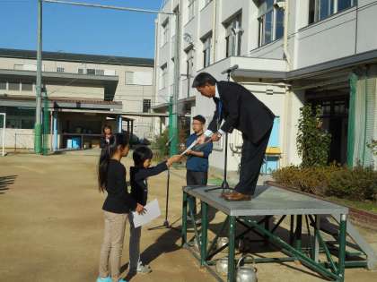 今日の児童朝会で、大阪市小学校児童絵画・版画展に出品していた作品の表彰がありました。本校からは、2年生と4年生の2名の児童が選ばれました。昨年度描いた作品の表彰でした。このような賞をいただけるのは本当にうれしいことです。おめでとう!!