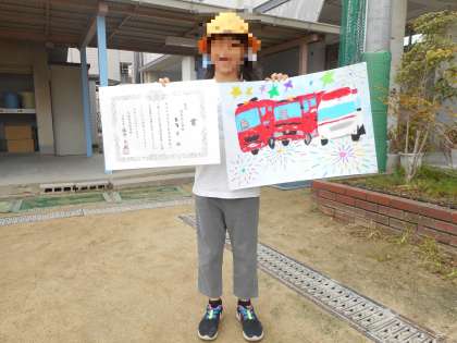 今日の児童朝会で、絵画コンクールの表彰でした。夏休みに描いた消防の絵で、本校の2年生の児童が努力賞をいただきました。消防署から表彰状が届いたので校長先生から手渡されました。とても上手で力作でした。おめでとう!!