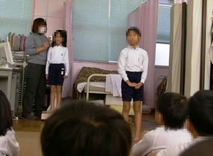 発育測定の前に、保健室の先生から「風邪の予防」のお話がありました。子どもたちも『手洗い』『うがい』の大切さは知っているようでした。手洗い・うがいが習慣になれば、風邪等の流行が予防できると思います。ご家庭でも手洗い・うがいの声かけをお願いします。