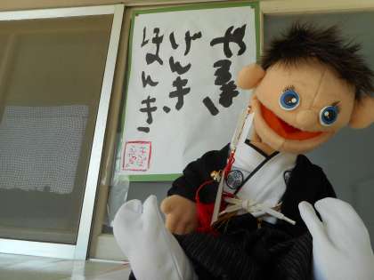 きぼう教室の前に、何やらお正月仕様の人形が現れました!児童と先生の共同作品です。1年間、やる気・元気・本気をモットーに頑張っていこうという気持ちになります!!
