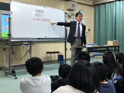 6年の社会科では税金や暮らしにかかわることについて勉強中です。今日は、住吉税理士会の方が来られて、租税教室が行われました。初めは「税金なんか払いたくないわ」や、「意味わからへん」といっていた子どもたちですが、わかりやすい説明と、税金がなかった場合の社会になったら・・・というアニメを見ることで、「税金はやっぱり払わんとあかんなぁ」という気持ちになったようです。