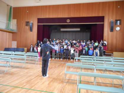 今週末に予定しています学習参観で、4年生は二分の一成人式を行います。今日は講堂で雛壇も設置して本格的な練習をしていました。中身の方は本番をお楽しみに。乞うご期待!