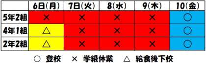 他の学級でも、ちらほらかぜ様疾患で欠席している児童もいます。今後これ以上広がらないよう、各ご家庭でも手洗い・うがい等予防対策の励行をよろしくお願いします。