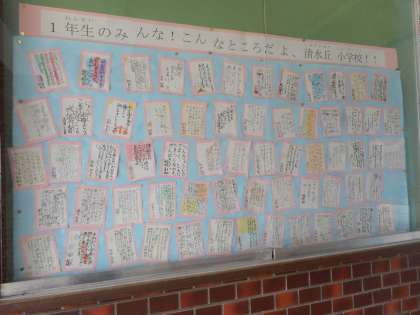 今月の玄関掲示は6年生の作品を飾っています。「1年生のみんなこんなところだよ!清水丘小学校」と題して学校を紹介してくれています。来校された際には、ぜひご覧ください。