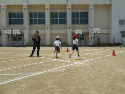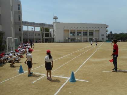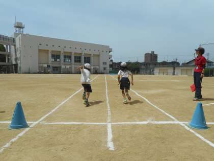 本日から体力テストがスタートしました。今週、運動場では50m走を行います。今日は2年生が力いっぱい走りました。