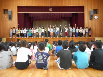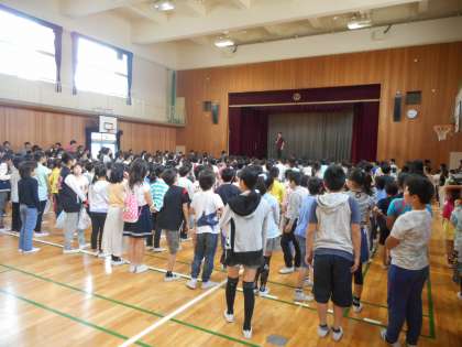 本日、今年度初めてのフレンド集会がありました。今日はフレンド班の並び方と代表委員会の自己紹介がありました。代表委員会の子どもたちは舞台に上がり、少し緊張した様子もありましたが堂々と紹介ができました。特に4年生の学級代表は初めての経験でしたが、がんばっていました。