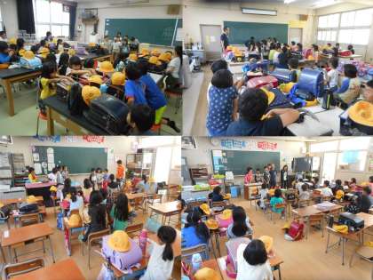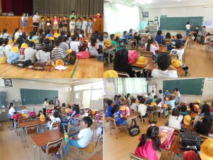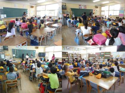 今日はフレンド集会に続いて、5時間目に縦割り班活動の地区別子ども会がありました。今年度1回目ということもあり、地区ごとに分かれ、自己紹介や1年生の紹介をしました。