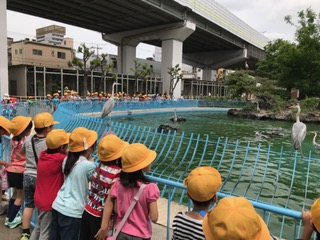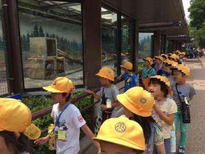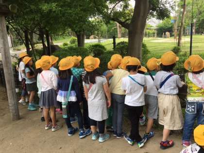 遠足での見学の様子です。初めて動物園に来た子どもも行ったことがある子どもも楽しんでいるようです。