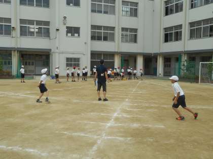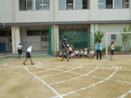 5年生のソフトボール投げの様子です。ボールを投げる友だちを応援している様子がよかったです。