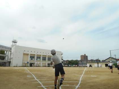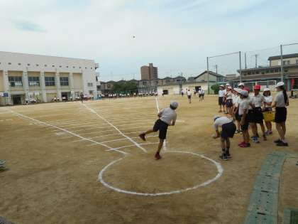 6年生のソフトボール投げの様子です。ボールの投げ方が力強いですね。