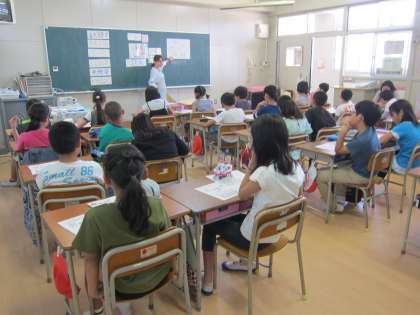 今日は、墨江小学校の栄養教諭の先生にお越しいただき、栄養指導を実施しました。学習のテーマはバランスの良い食事でした。様々なおかずを選び、主食や野菜などのバランスの良い食事を考えました。