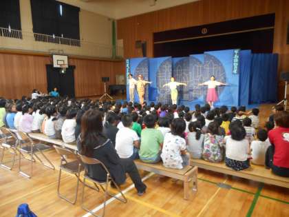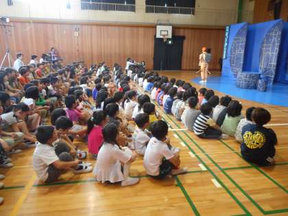 本日、「ロボットをかします」という劇鑑賞会がありました。午前は1・2・3年、午後は4・5・6年が鑑賞しました。主人公が弟がほしいという願いをもち、ロボットの弟をレンタルしてはじまる家族や兄弟の大切さを考えさせられる話でした。