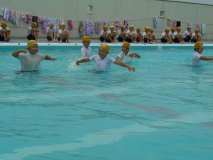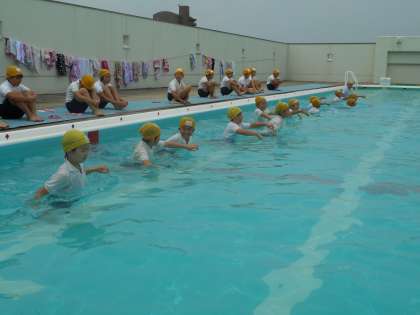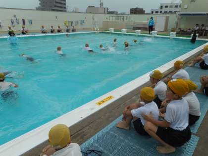 今日は4年生の着衣泳がありました。日頃の水着と違って、体操服を着て入水しました。歩くこと、浮くこと、プールサイドに上がることなど、水着とは違う感覚を体験できました。